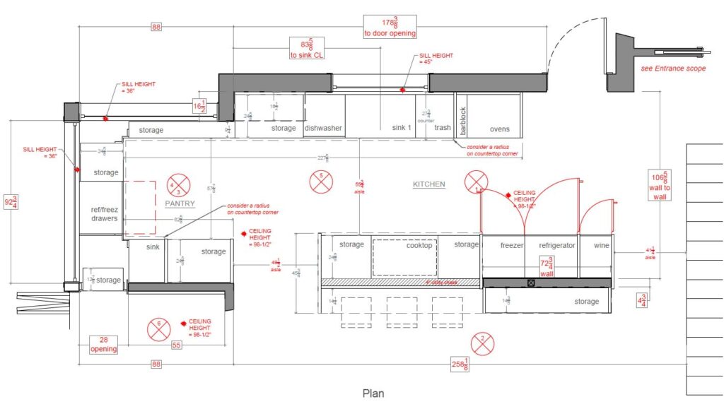 On wall behind sink; on wall behind prep sink; full wall coverage
