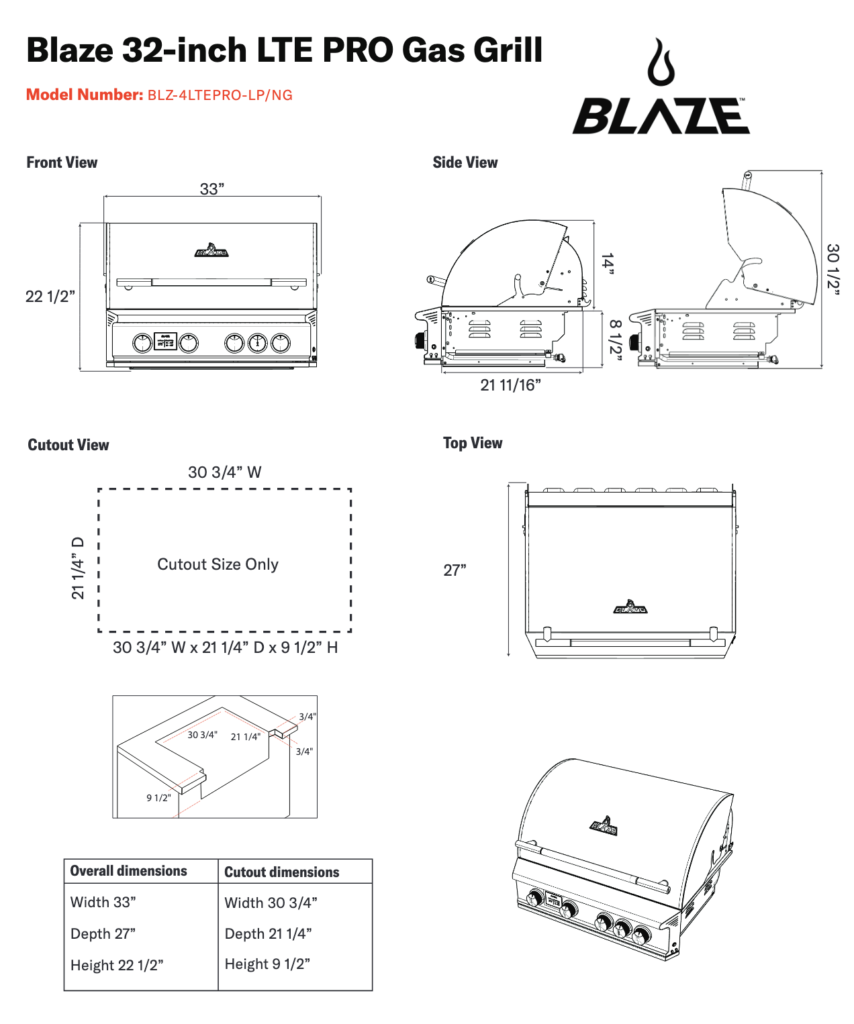 BLAZE PREMIUM LTE 32-INCH 4-BURNER BUILT-IN NATURAL GAS GRILL